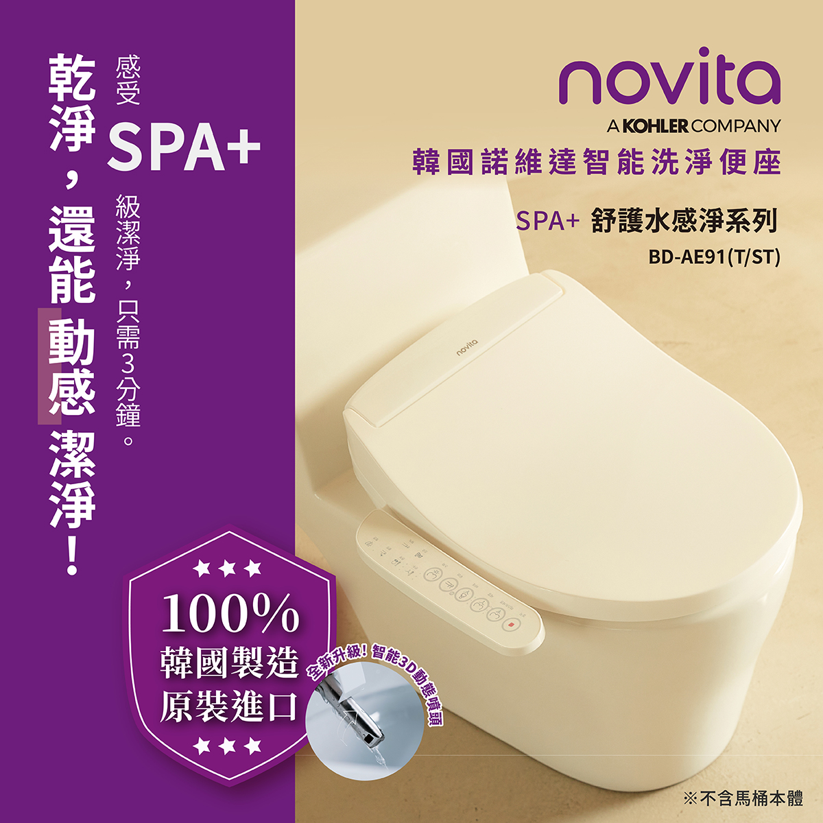 Novita諾維達SPA+舒護水感勁洗淨便座 BD-AE91ST (短版)