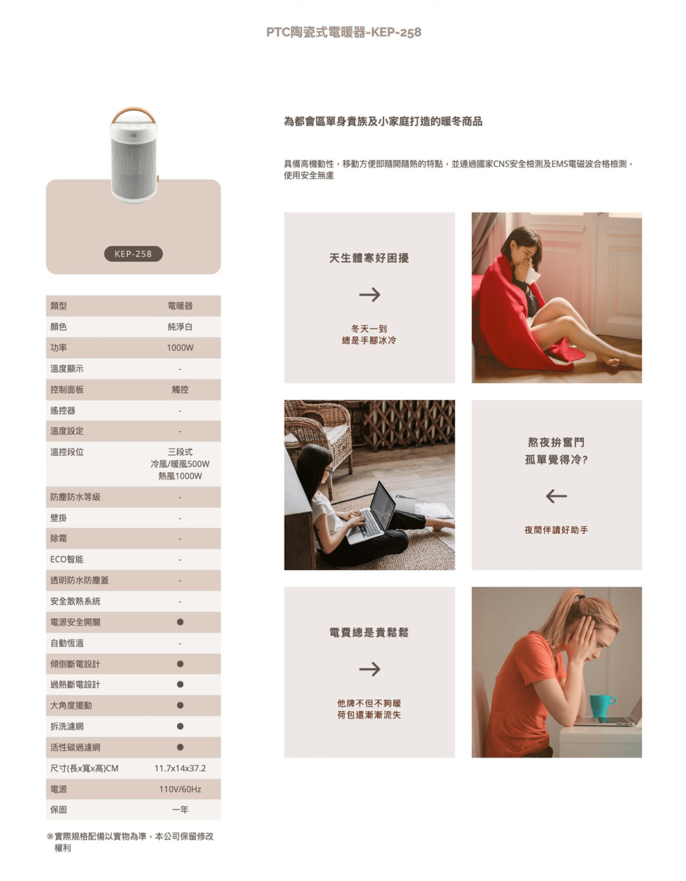 | KE嘉儀 | 一年保固 | 自行送修/貨運收送 |