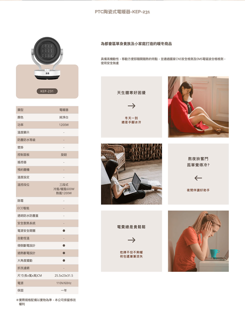 | KE嘉儀 | 一年保固 | 自行送修/貨運收送 |