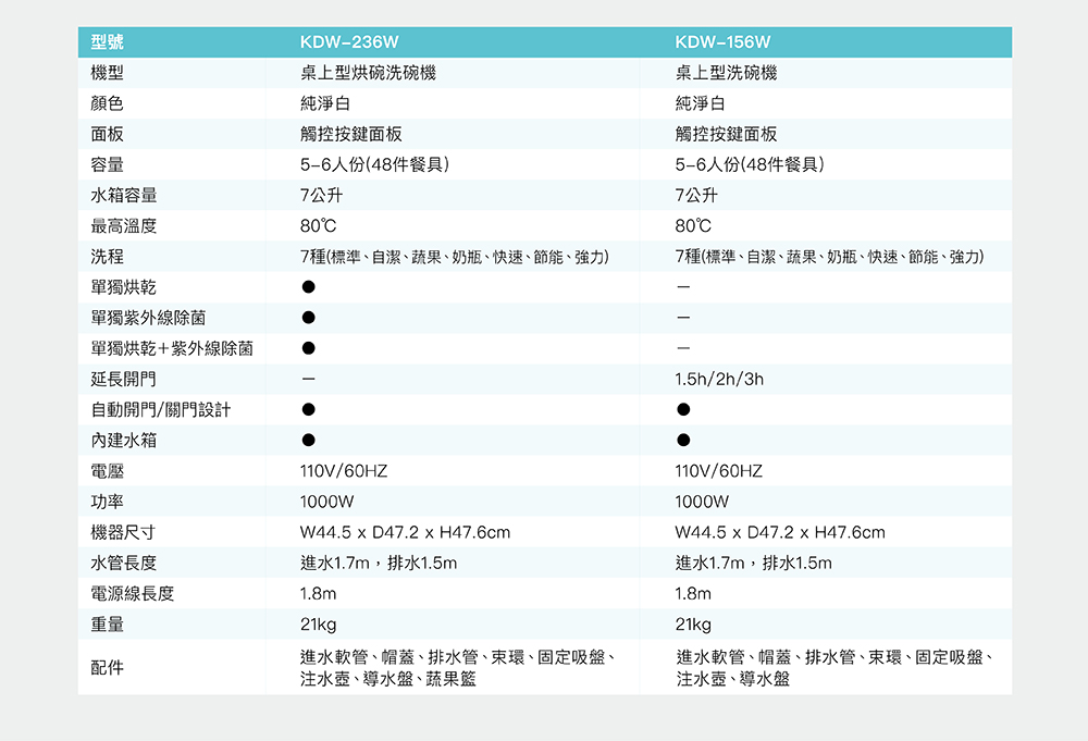 | 型號 | KDW-156W |