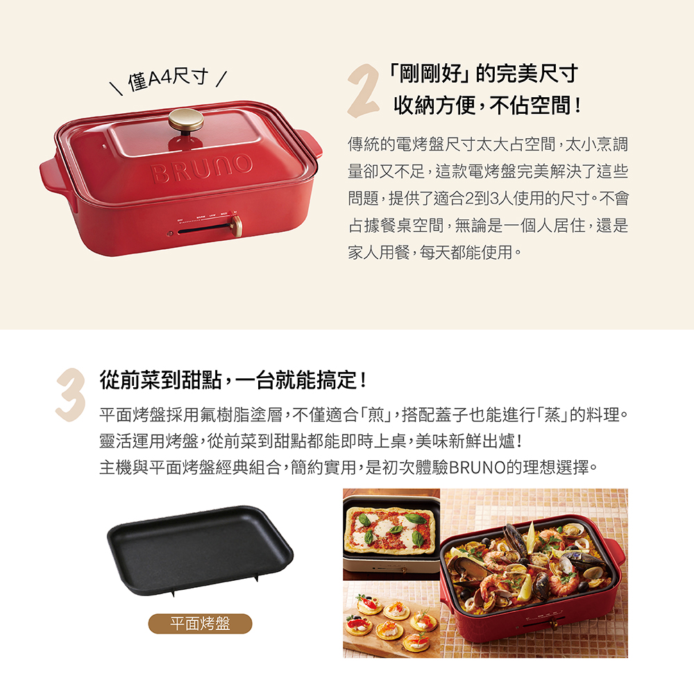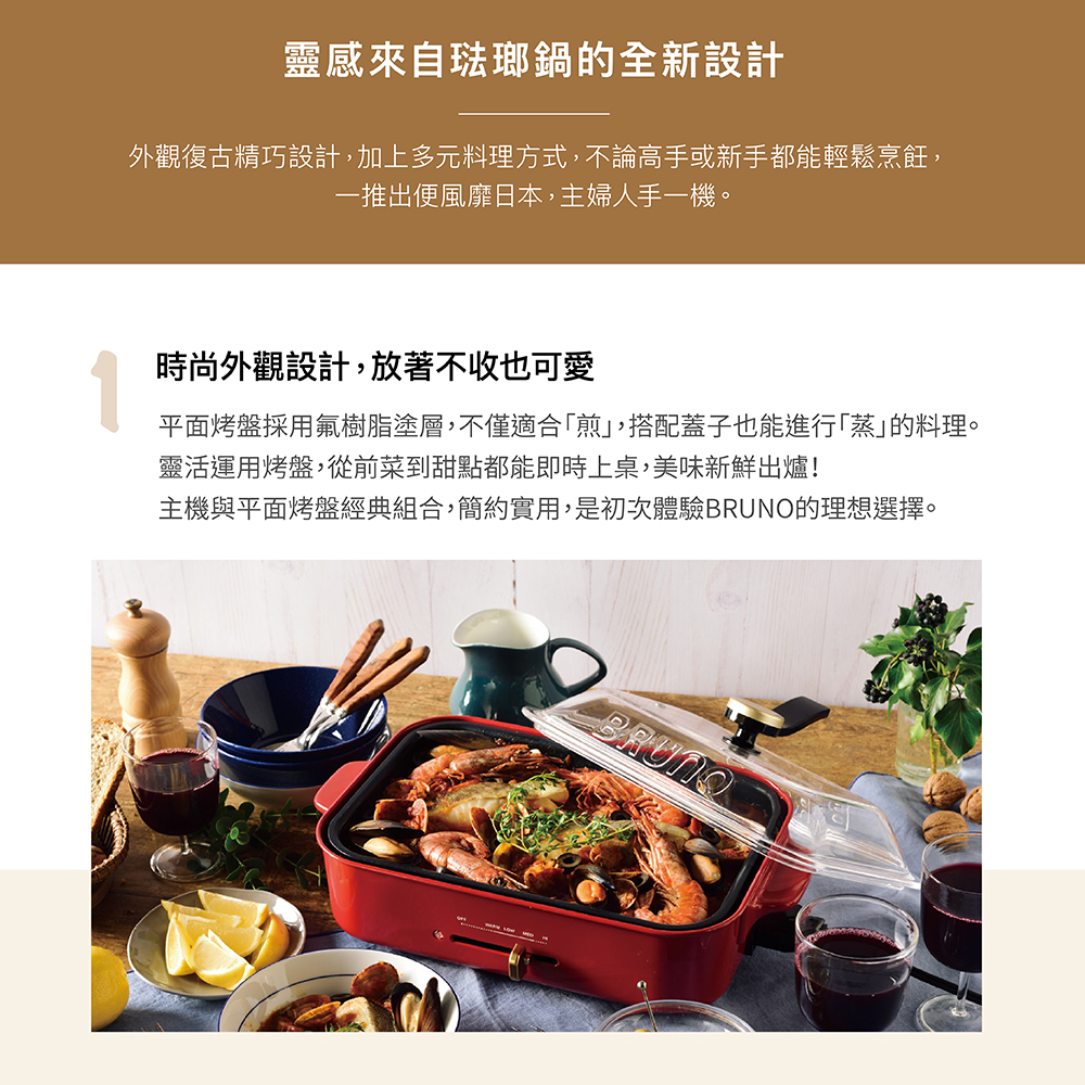 - 主機與平面烤盤經典組合,是初次體驗BRUNO的理想選擇。