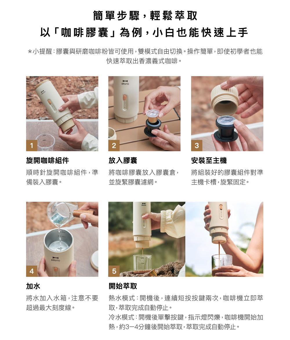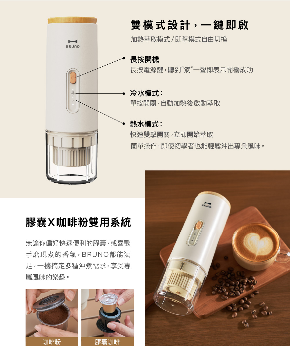 ‧ 膠囊/咖啡粉皆可使用,輕鬆切換 2 in 1 模式