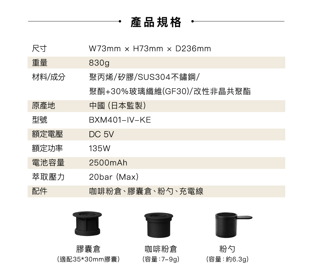 ‧ 2500mAh鋰電池續航力強,陪你度過整日的咖啡時光