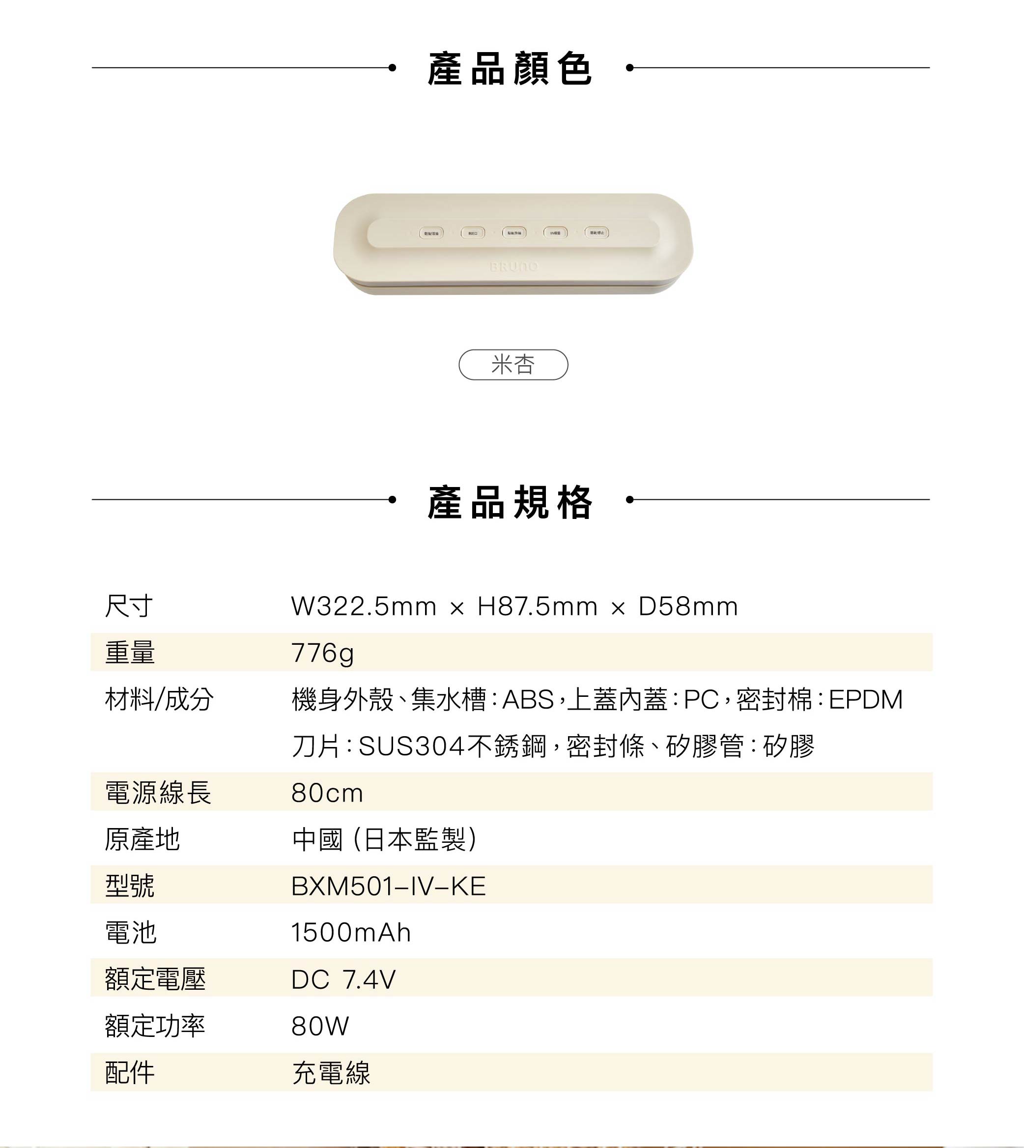 | BRUNO | 一年保固(電器),無電產品無保固 | 自行送修/貨運收送 |