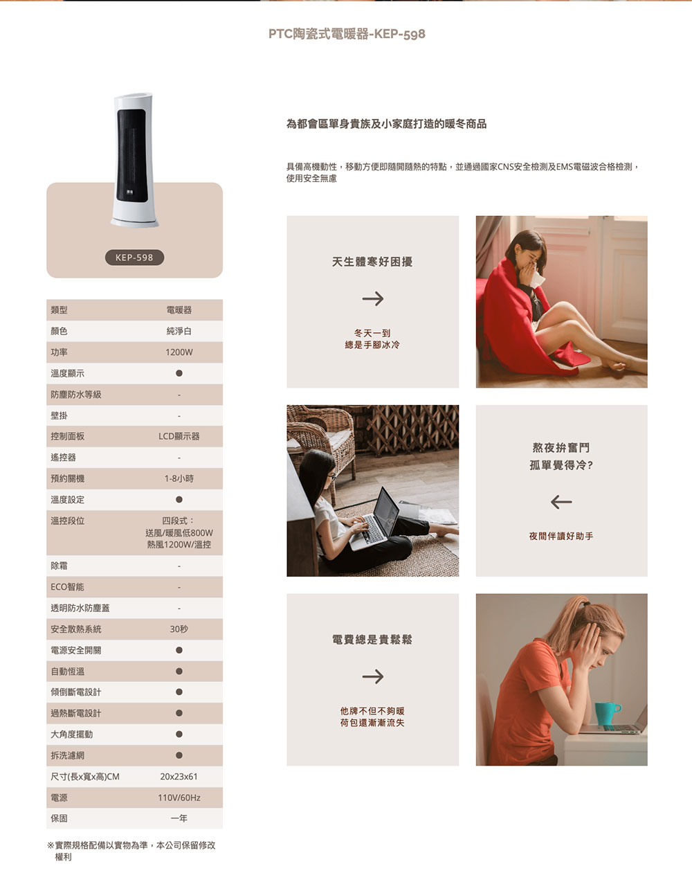 | KE嘉儀 | 一年保固 | 自行送修/貨運收送 |